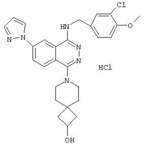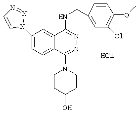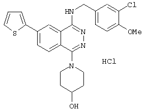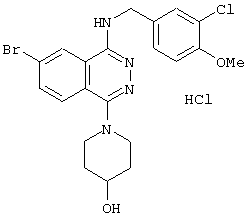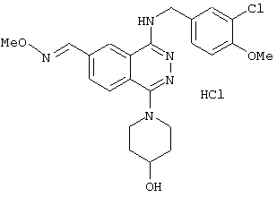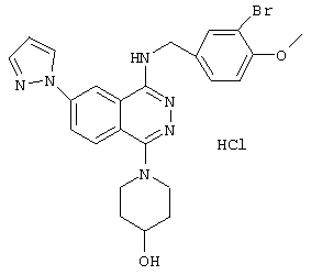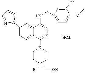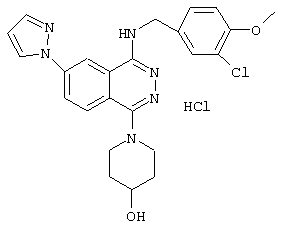 19) 1-[4-[(3-хлор-4-метоксибензил)амино]-6-(1Н-1-пиразолил)-1-фталазинил]-4-пиперидинол;