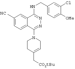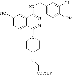 К раствору 1-хлор-4-(3-хлор-4-метоксибензиламино)-6-фталазин-6-карбонитрила (1,44 г) в NNP (10 мл) добавляют гидрохлорид трет-бутилового эфира пиперидинил-4-илоксиуксусной кислоты (3,02 г) и N,N-диизопропилэтиламин (3,10 г) и перемешивают 2 часа 20 минут при 170