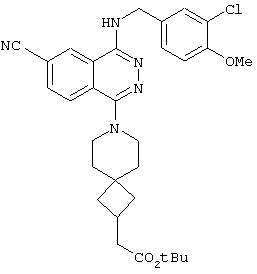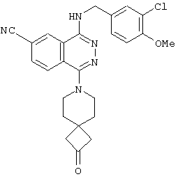 500 мг 4-[(3-хлор-4-метоксибензил)амино]-1-(2-гидрокси-7-азаспиро[3.5]нон-7-ил)-6-фталазинкарбонитрила суспендируют в 20 мл дихлорметана и 10 мл тетрагидрофурана, затем добавляют 690 мг 1,1,1-триацетокси-1,1-дигидро-1,2-дибензйодоксазол-3-(1Н)-она и смесь перемешивают при комнатной температуре в течение 15 минут. Добавляют этилацетат, 30 мл насыщенного водного раствора бикарбоната натрия и 2 мл насыщенного водного раствора тиосульфата натрия (