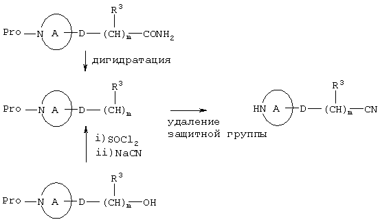 где кольцо А представляет 4-8-членное аминное кольцо, которое может быть замещено метильной группой и может содержать двойную связь; D представляет одинарную связь или атом кислорода; R3 представляет атом водорода, C1-C4 алкильную группу или атом галогена; m представляет целое число от 0 до 3; W представляет аминогруппу, гидроксильную группу, цианогруппу, карбоксильную группу, которая может быть защищена, или C1-C4 алкоксигруппу;