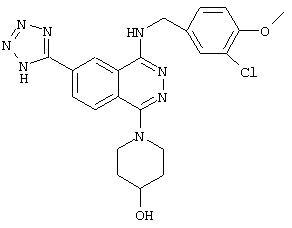 0,55 г азида натрия добавляют в смесь 1,0 г 4-[(3-хлор-4-метоксибензил)амино]-1-(4-гидроксипиперидино)-6-фталазинкарбонитрила, 1,2 г триэтиламина гидрохлорида и 20 мл 1-метил-2-пирролидинона, перемешивают при 100