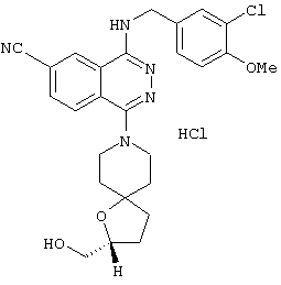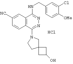 Смесь 657 мг 1-хлор-4-[(3-хлор-4-метоксибензил)амино]-6-фталазинкарбонитрила, 700 мг 3-оксо-2-окса-8-азаспиро[4,5]декана гидрохлорида, 0,44 мл диэтиланилина, 137 мг йодида натрия и 1,7 мл 1-метил-2-пирролидинона перемешивают при 130