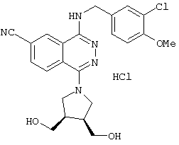 8) 4-(3-хлор-4-метоксибензил)амино]-1-[(3R,4S)-3,4-ди(гидроксиметил)тетрагидро-1Н-1-пирролил]-6-фталазинкарбонитрил;