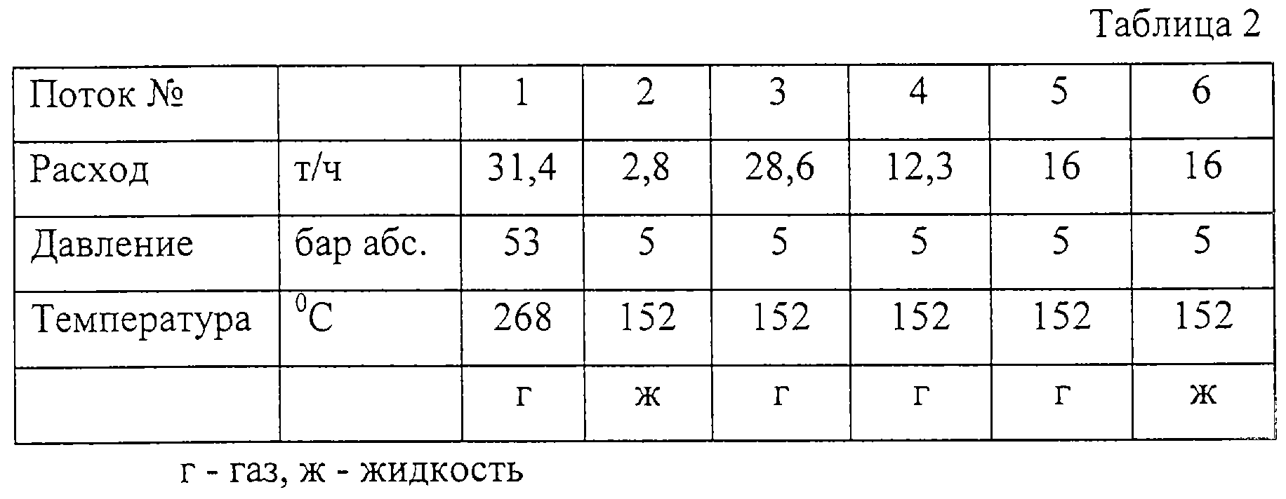 На фиг.2 приведен второй пример. Здесь дросселирование происходит при противодавлении 5 бар абс. (см. данные по потокам в табл.2). Паровая турбина Т может приводить в действие одну или несколько рабочих машин М (насос, компрессор) мощностью около 2,7 МВт. Насыщенный пар направляется в основном в испаритель S первой колонны (поток 5). Избыток насыщенного пара 4 отводится в паровую сеть N.