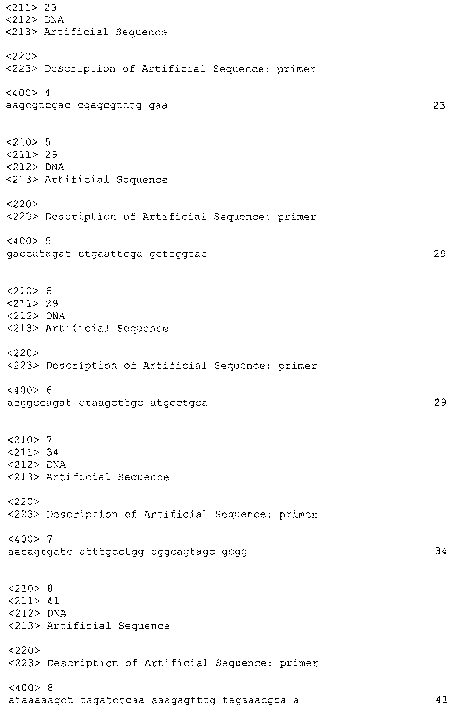 На основе приведенной нуклеотидной последовательности были синтезированы затравки, приведенные под номерами 3 (затравка 1) и 4 (затравка 2) в Списке последовательностей (см. в конце описания). Затравка 1 комплементарна последовательности с 179 по 153 нуклеотид перед старт-кодоном и содержит сайт узнавания фермента рестрикции BamHI, введенный на ее 5’-конец. Затравка 2 комплементарна последовательности с 53 по 77 нуклеотид после стоп-кодона и содержит сайт узнавания фермента рестрикции SalI, введенный на ее 5’-конец.