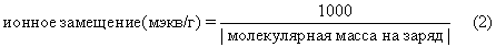 Степень ионного замещения можно определить на основании известного строения полимера по уравнению