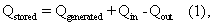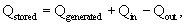 где Qstored представляет количество тепла, воспринятого теплоемкостью материала, Qgenerated представляет количество тепла, выделенное объемом материала, Qin представляет количество тепла, переданное материалу от его окружения, и Qout представляет количество тепла, переданного от материала в его окружение.