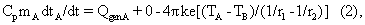 В уравнении (3) все переменные являются константами кроме dtA/dt и (TA-ТB). Соответственно уравнение (3) может быть упрощено до: