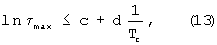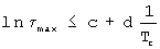где mах – максимальная продолжительность обработки продукта сушильным агентом при температуре Тc, в течение которой его качественные показатели остаются в пределах соответствующего стандарта; а, b, с, d – эмпирические коэффициенты для данного продукта.