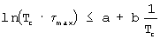 Следовательно, вместо распространенных в научной и технической литературе терминов “максимально допустимая температура сушильного агента или продукта” из уравнения (10) вытекает понятие теплового импульса (числа) сушильного агента, под которым следует понимать произведение абсолютной температуры сушильного агента на продолжительность обработки этим сушильным агентом. Максимальное значение теплового импульса сушильного агента является линейной функцией обратного значения абсолютной температуры сушильного агента и может рассматриваться в качестве критерия теплового воздействия на термолабильный пищевой продукт в процессе сушки. Назовем уравнение (9) уравнением температурных режимов, поскольку оно устанавливает зависимость максимальной продолжительности обработки термолабильного продукта от абсолютной температуры сушильного агента. Рассмотрим математическую модель допустимых температурных режимов сушки пищевых продуктов, если константа скорости физико-химических превращений в термолабильном компоненте определяется законом Аррениуса (Тутова Э.Г., Куц П.С. Сушка продуктов микробиологического производства. – М.: Агропромиздат, 1987. – 303 с.).