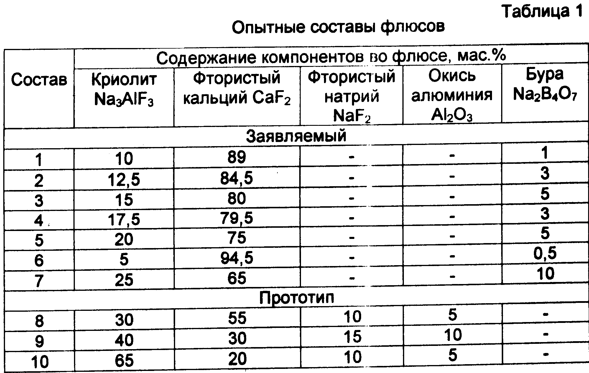 Таким образом, заявляемый флюс для электрошлакового преплава цветных металлов соответствует условию патентоспособности “промышленная применимость”, так как он работоспособен, устраняет недостатки прототипа и может быть использован в промышленных условиях.