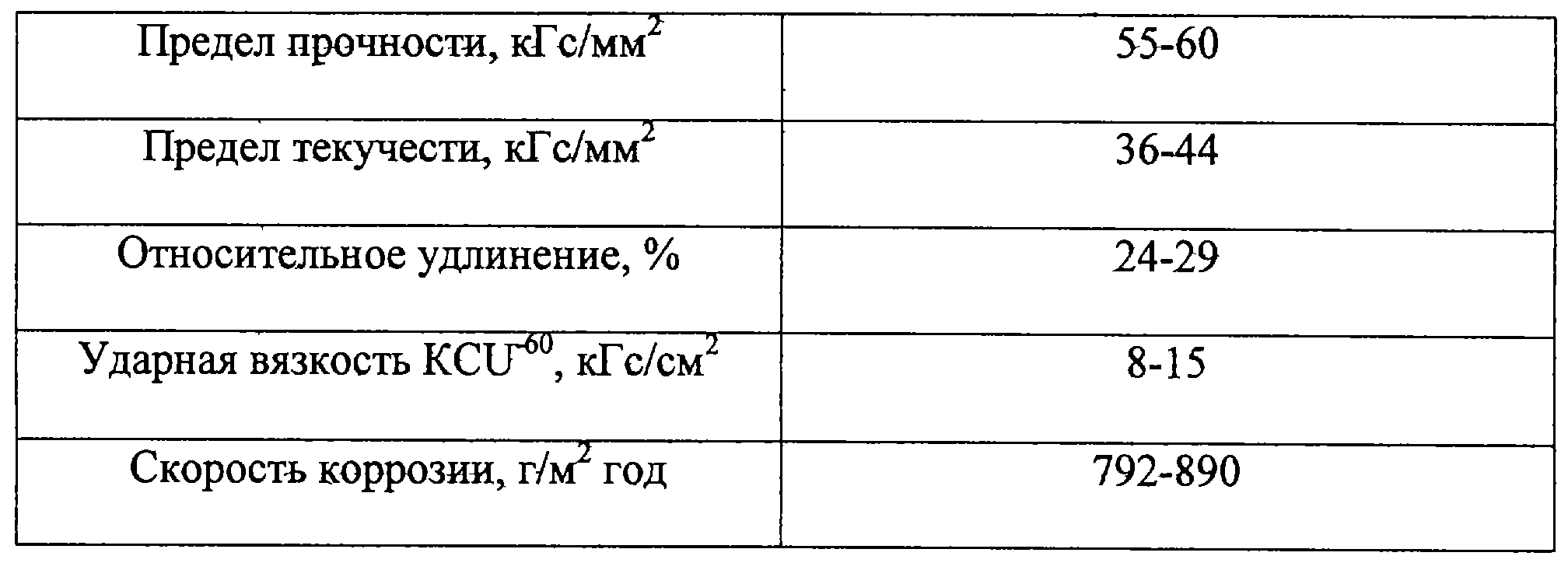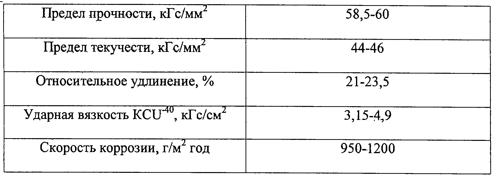 Экспериментально установлено, что после термической обработки сталь имеет следующие механические и коррозионные свойства (не менее):