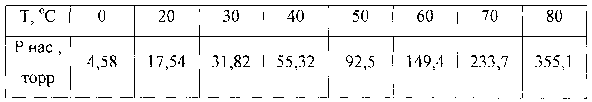 В таблице приведена зависимость давления насыщенных паров воды от температуры (4).