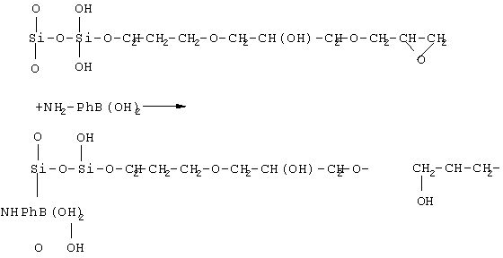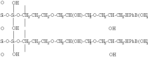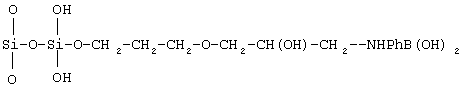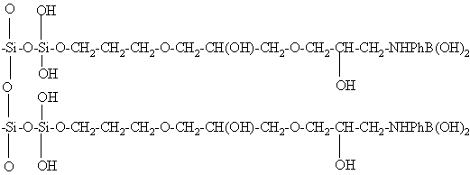 Формула изобретения Сорбент для аффинного определения гликозилированного гемоглобина на основе кремнезема, содержащий иммобилизованную метааминофенилбороновую кислоту, отличающийся тем, что в качестве носителя используется пористый силикагель, модифицированный глицерилпропилсиланом, активированный эпихлоргидрином, общей формулы
