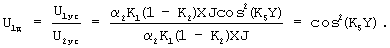 Сигнал U1д с выхода первого делителя 10 поступает на вход преобразователя 11, который последовательно проводит следующие операции: извлечение квадратного корня, взятие арккосинуса и усиление с коэффициентом усиления, равным (К5)-1. Таким образом, сигнал на выходе преобразователя 11 будет равным Y.
