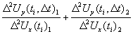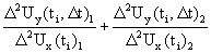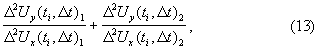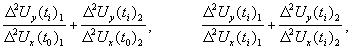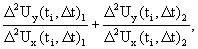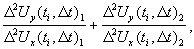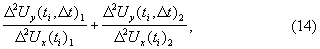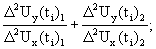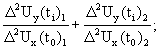 2Uy(ti)1, 2Uy(ti)2 – мгновенные значения вторых разностей электрических потенциалов, измеренные по направлению, перпендикулярному к оси профиля, в паузах тока на всем протяжении существования каждой из этих пауз от ее начала до конца через заданные равные интервалы времени t, при подаче токов соответственно в первый и второй дипольные электрические источники;