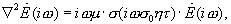 В случае высокопроводящей среды, к которой относятся осадочные отложения горных пород, в связи с тем, что 0 численно многократно больше , второй член в правой части уравнения (2) мал по сравнению с первым, и его отбрасывают (Л.Л.Ваньян. Основы электромагнитных зондировании. М., “Недра”, 1965, с.28-30) [5]. Физически это означает, что токами смещения в проводящих средах пренебрегают ввиду их малости по сравнению с токами проводимости. Тогда уравнение (2) принимает вид