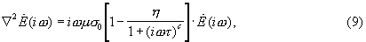 Тогда уравнение (3) для проводящей неполяризующейся среды с учетом преобразования (6) примет вид