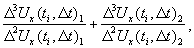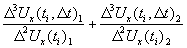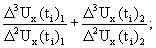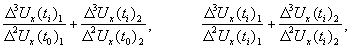 2Ux(ti)1, 2Ux(ti)2 – мгновенные значения вторых осевых разностей электрических потенциалов, измеренные в паузах тока на всем протяжении существования каждой из этих пауз от ее начала до конца через заданные равные интервалы времени t, при подаче токов соответственно в первый и второй дипольные электрические источники;