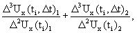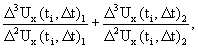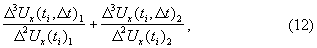 3Ux(ti, t)1, 3Ux(ti, t)2 – разности значений между разделенными промежутками времени t двумя ближайшими мгновенными значениями третьих осевых разностей электрических потенциалов, измеренных в паузах тока на всем протяжении существования каждой из этих пауз, при подаче токов соответственно в первый и второй дипольные электрические источники;
