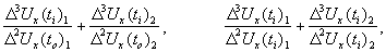 3Uх(ti)1, 3Uх(ti)2 – мгновенные значения третьих осевых разностей электрических потенциалов, измеренные в паузах тока на всем протяжении существования каждой из этих пауз от ее начала до конца через равные интервалы времени t, при подаче токов соответственно в первый и второй дипольные электрические источники;