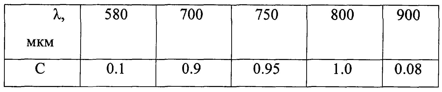 Частотно-контрастные характеристики объектива рассчитаны в соответствии с таблицей коэффициентов спектральной эффективности актиничного потока излучения, приведенной ниже.