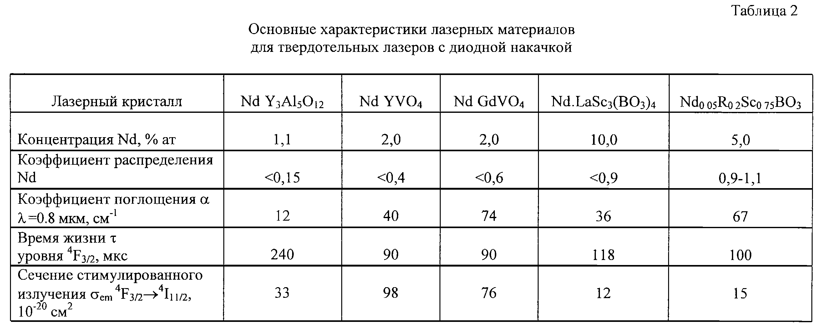 Как следует из результатов проведенных исследований и характеристик, приведенных в табл.2, предлагаемый лазерный материал является перспективным для применения в лазерах с диодной накачкой.