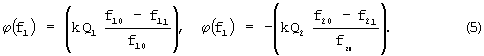 Воспользуемся следующими выражениями для эквивалентных фазо-частотных характеристик (f1) и (f2):