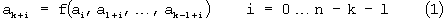 Далее слово циклического кода C(n,k) рекуррентно продолжают с помощью того же соотношения до длины n1