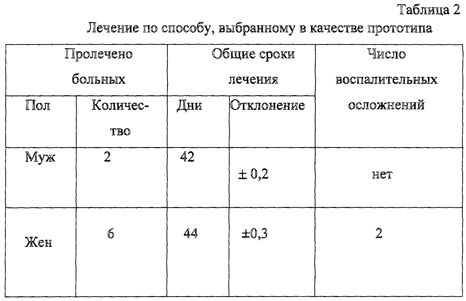 Статистическая обработка по предложенному методу и по методу, выбранному в качестве прототипа, приведена в табл. 1 и 2.