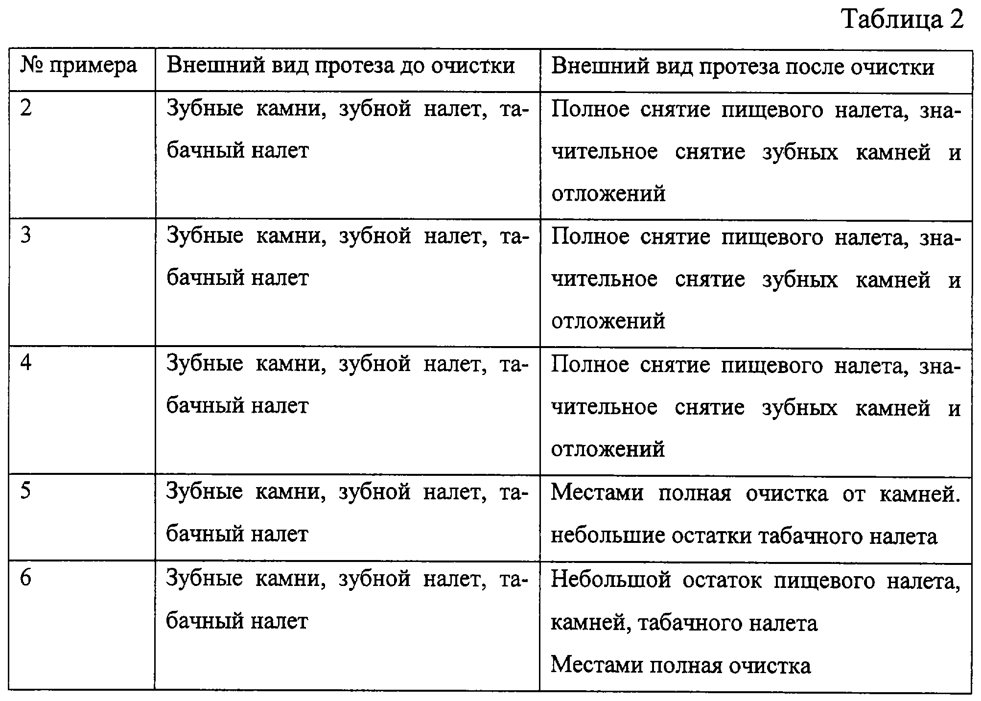 В таблице 2 представлен внешний вид протезов до и после очистки по примерам 2-6.