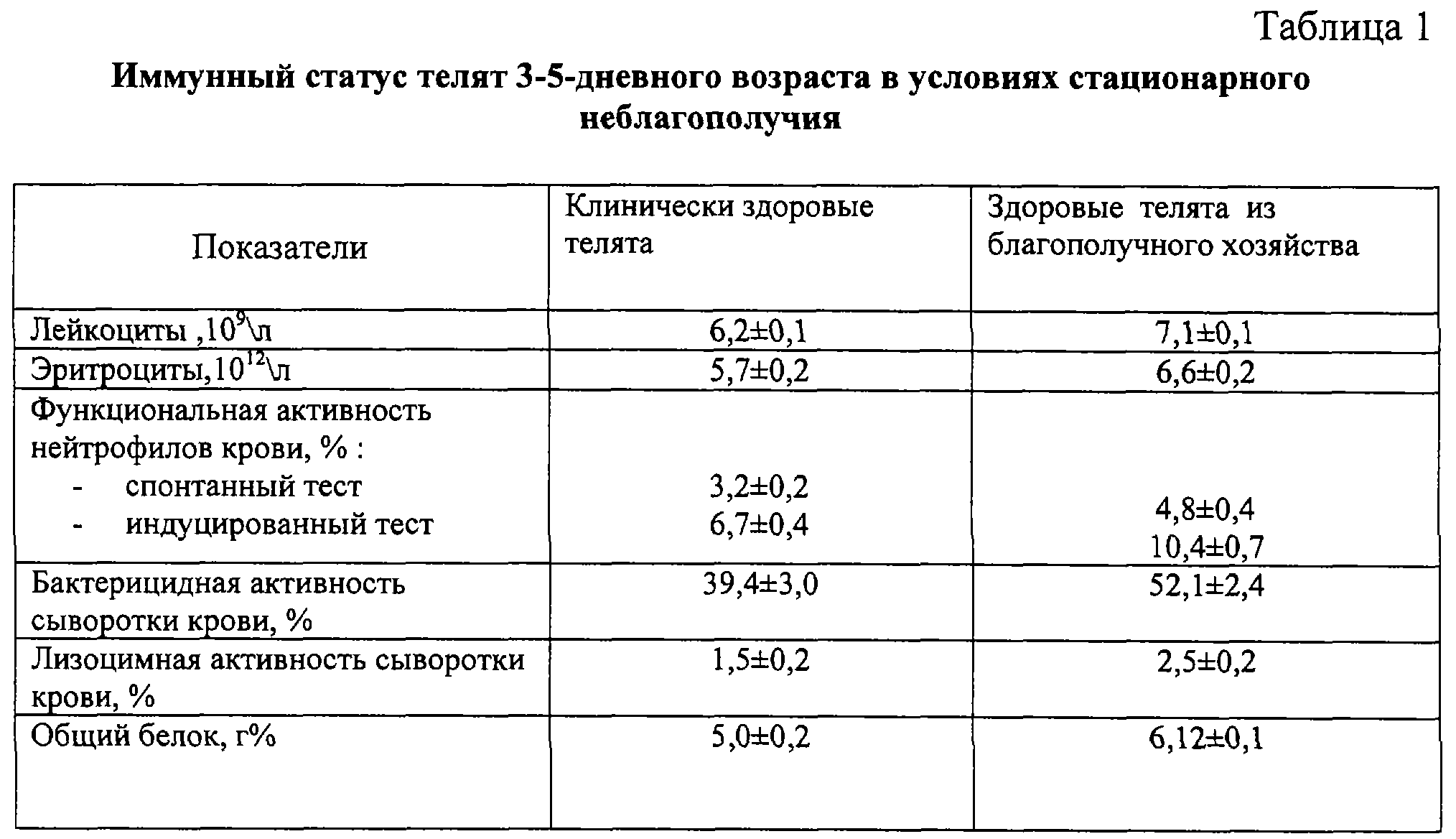 (57) Реферат: Изобретение относится к ветеринарии. Применяют пробиотик бифидумбактерин в смеси с криопорошком овса в соотношении 1:10 в дозе 8-16 г на голову 1 раз в сутки за 60 минут до кормления в течение 14 дней, начиная со второй выпойки молозива. Способ обеспечивает повышение неспецифической резистентности и снижение заболеваемости у молодняка крупного рогатого скота. 10 табл. Изобретение относится к ветеринарии, касается способа вспомогательной профилактики болезней телят и может быть использовано для выращивания резистентного молодняка крупного рогатого скота. Болезни молодняка крупного рогатого скота представляют группу разнородных патологий, отличающихся множеством причин, включающих широкий спектр факторов. Основной причиной данных болезней являются инфекционные агенты, в том числе вирусы, бактерии, микоплазмы, хламидии и грибы на фоне снижения естественной резистентности и вторичных иммунодефицитов. Так, наши исследования, проведенные в хозяйствах Нижегородской области, длительно неблагополучных по желудочно-кишечным и респираторным инфекциям, выявили иммунодефицитные состояния у клинически здоровых телят как 3-5-, так и 20-дневного возраста (таблицы 1, 2)