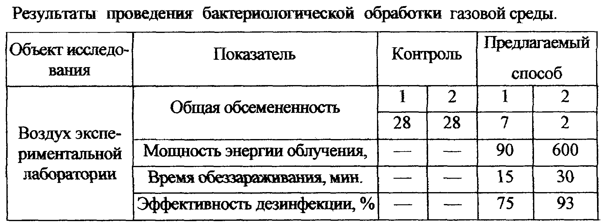 Таким образом, применение предлагаемого способа дезинфекции воздуха в помещении обеспечивает снижение бактериальной обсемененности воздуха, повышает эффективность очистки воздуха при безопасной работе в помещении.