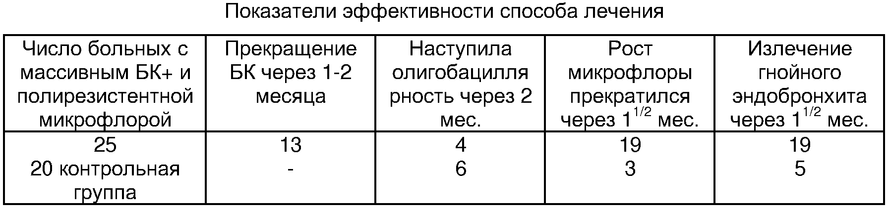 (54) СПОСОБ ЛЕЧЕНИЯ ГНОЙНЫХ ЭНДОБРОНХИТОВ У БОЛЬНЫХ ДЕСТРУКТИВНЫМ ТУБЕРКУЛЕЗОМ ЛЕГКИХ С ПОЛИРЕЗИСТЕНТНЫМИ МИКРОБАКТЕРИЯМИ И МИКРОФЛОРАМИ