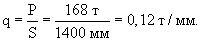Рулоны холоднокатаных полос последовательно устанавливают на разматывателе, полосы задают в валки. С помощью гидравлических нажимных устройств создают усилие дрессировки Р=168 т и производят дрессировку полос. Погонная нагрузка q в контакте рабочего и опорного валка при этом составляет: