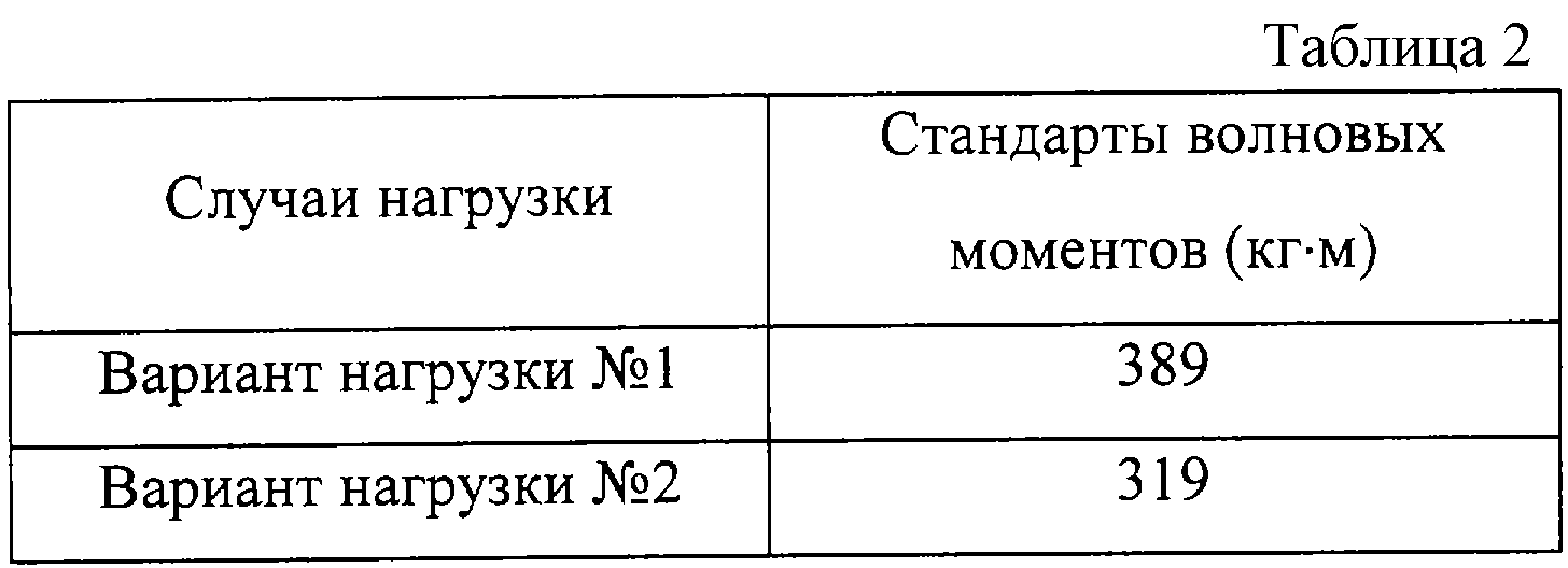 Исследования проводились при следующих эксплуатационных параметрах: высота волны с трехпроцентной обеспеченностью h3%=85 см, что соответствует девятибалльному волнению для натурного судна; длина волны равнялась длине модели; относительная скорость (число Фруда) Fr=0,12 при встречном волнении. После обработки результатов экспериментов были получены стандарты волновых изгибающих моментов, которые представлены в табл. 2.