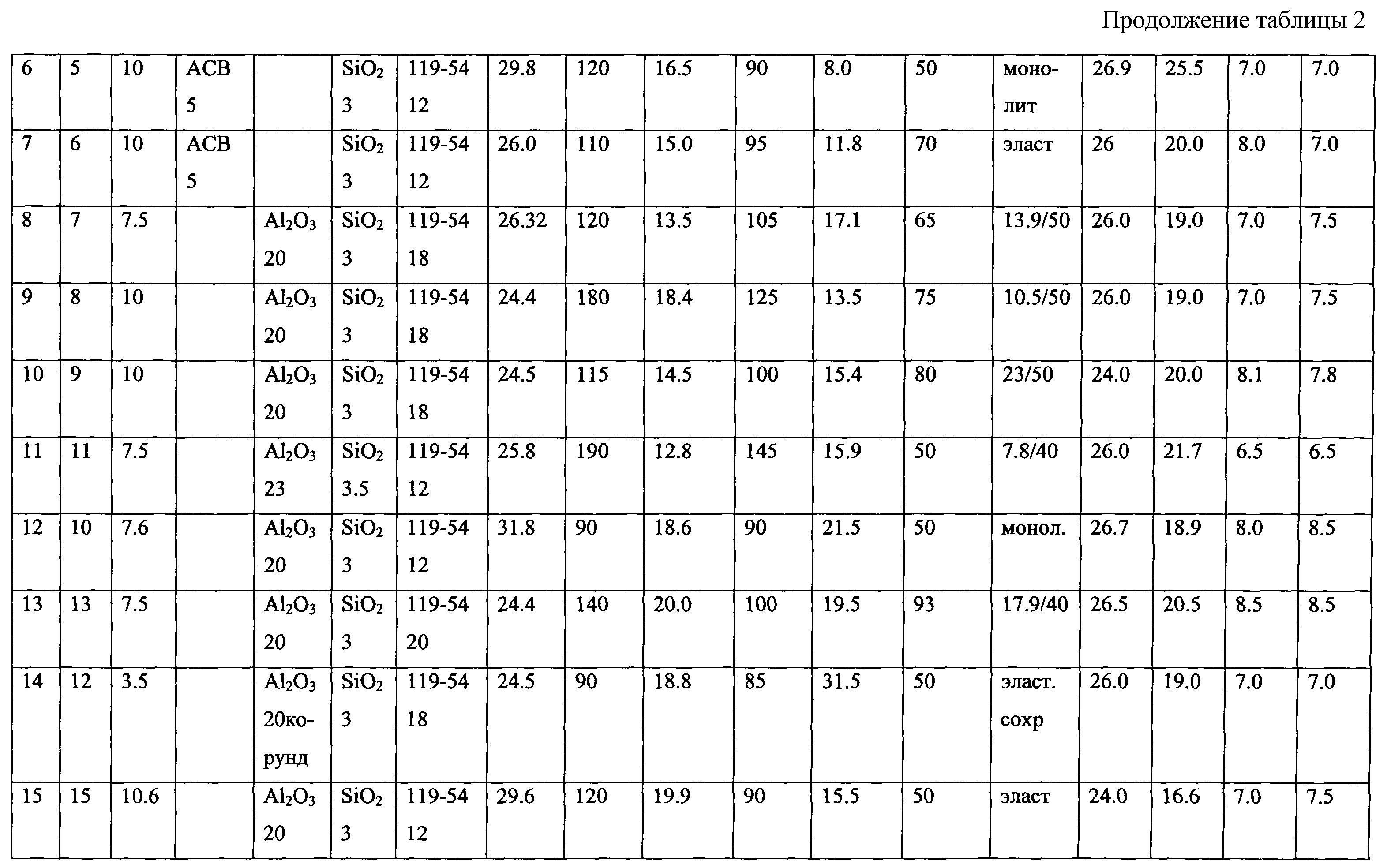 неорганический наполнитель – оксиды кремния или алюминия, и/или алюмосиликатные волокна 1-26,5 мас.ч.,