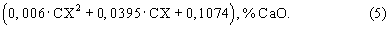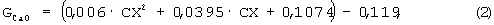 GCaO=(0,006 CX2+0,0395 CX+0,1074)-0,119,