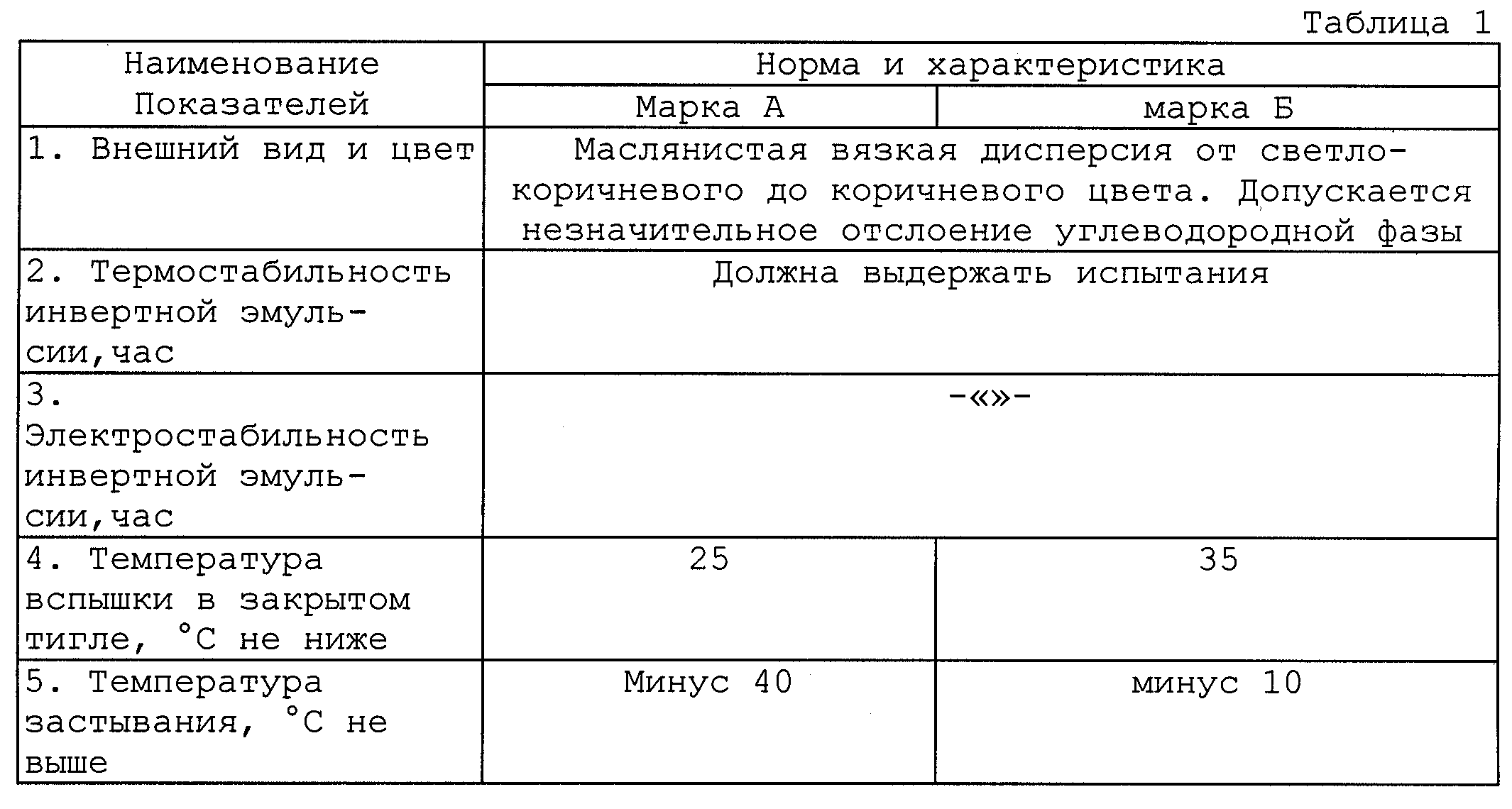 Пример 2. Для оценки стабильности образовавшихся эмульсий колбы с готовыми эмульсиями выдерживали при температуре воздуха 20 С. Результаты, приведенные в таблице 3, показывают, что во всех опытах эмульсия стабильна более 50 суток, тогда как по прототипу эмульсия разрушилась на 20 сутки.