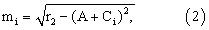 r=(А+Сi)2+m2i, (1)