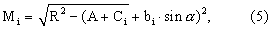 R2=(A+Ci+bi-sin )2+M2i, (4)
