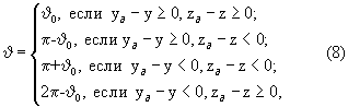 Угол определяется положением датчика (y ,z ) относительно точки попадания (у,z) и равен