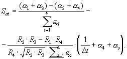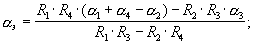 Разделив числитель и знаменатель полученного выражения на R2 R4, введя понятие коэффициента симметрии, учитывая, что r2 и r3 имеют противоположные знаки по отношению к r1 и r4, и пренебрегая величинами второго порядка малости, можно эту формулу представить в виде: