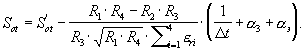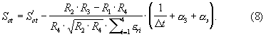 Первое слагаемое полученного выражения представляет собой аддитивную температурную чувствительность сбалансированной мостовой цепи, поэтому обозначая ее через Sot‘, в общем виде аддитивную температурную чувствительность несбалансированной мостовой цепи можно представить следующим образом: