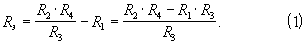 При подключении термонезависимого компенсационного резистора не только к плечу R1, но и к любому плечу мостовой схемы, определенному в соответствии с проведением операций по предлагаемому способу, выражение (11) может быть записано в общем виде