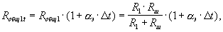 Но с другой стороны, Rобщ1t может быть записано через эквивалентное ТКС плеча Rобщ1 в виде: