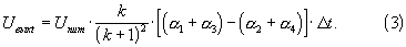 Имея эквивалентную схему замещения и зная ее параметры, можно определить выходной сигнал датчика с учетом предварительной несбалансированности при воздействии температуры. Подставляя значения эквивалентных параметров схемы в формулу выходного сигнала мостовой цепи (3), можно записать: