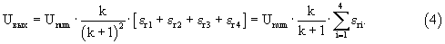 Разделив числитель и знаменатель полученного выражения на R2 R4 и введя понятие коэффициента симметрии можно эту формулу представить в виде: