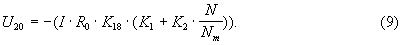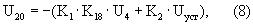где K1, К2 – коэффициенты передачи сумматора 19 по входам для напряжений U18 и Uуст;