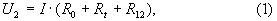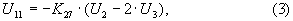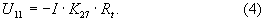 Напряжение U11 на выходе измерительного усилителя 10 связано с напряжениями на его входах (при равенстве сопротивлений резисторов 25 и 26) выражением